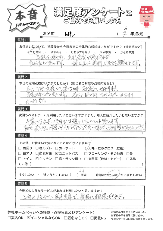 塗装後の満足度アンケート