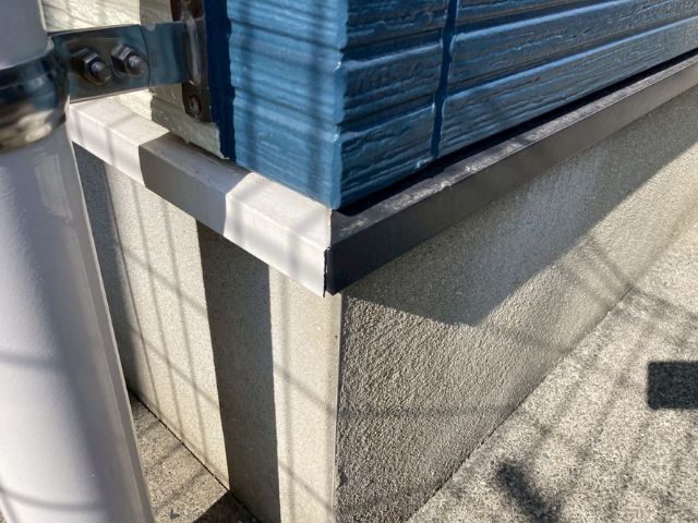 水切り:塗装時のままきれいに保たれていました!水切りを塗装することによって、雨水や土台の腐食、シロアリの発生を防ぐことができます。お住まいの大切な土台を塗装で守っています!