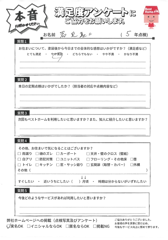本日は鞍手郡小竹町勝野にて5年点検に伺い、美観は維持できているか、劣化箇所や補修が必要な箇所はないか確認しました!点検結果、お客様からの声をぜひご参考ください。