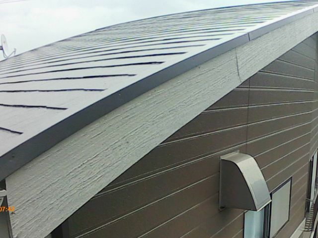 破風:屋根や外壁と比べると材質が違うため耐久年数は低いですが、塗装時のまま綺麗に保たれていました!剥がれもなく良好です!