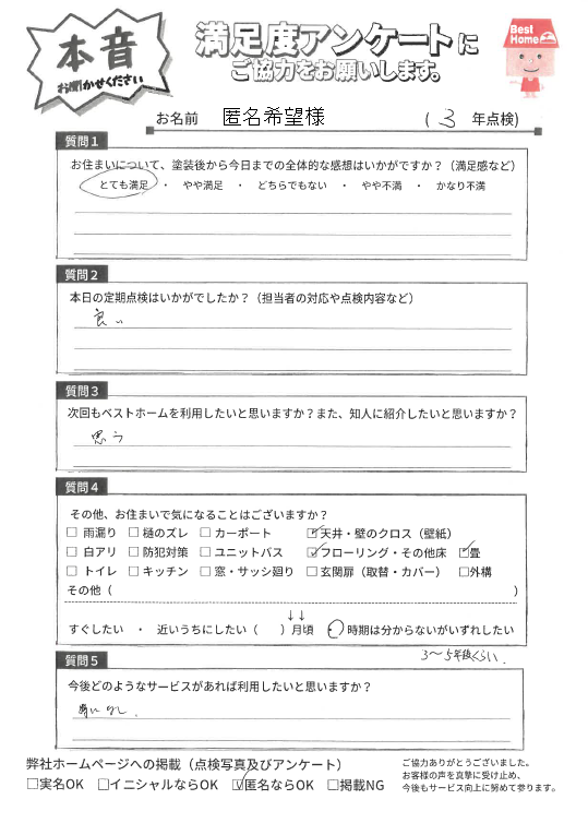 塗装後の満足度アンケート