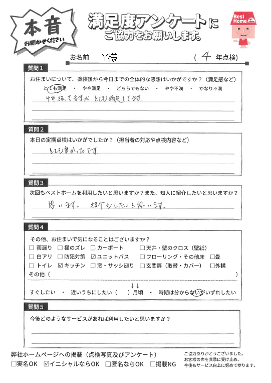 塗装後の満足度アンケート