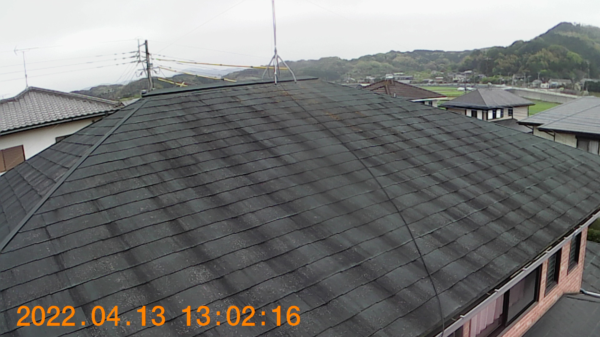 本日、宗像市広陵台にてコロニアル屋根塗装から10年後の定期点検にお伺いしました。