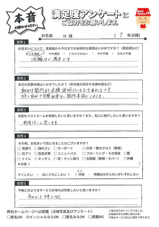 本日は遠賀郡遠賀町浅木にて7年点検に伺い、美観は維持できているか、劣化箇所や補修が必要な箇所はないか確認しました!