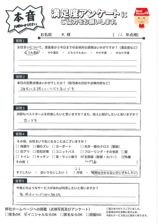 本日は北九州市小倉南区にて12年点検に伺い、美観は維持できているか、劣化箇所や補修が必要な箇所はないか確認しました!