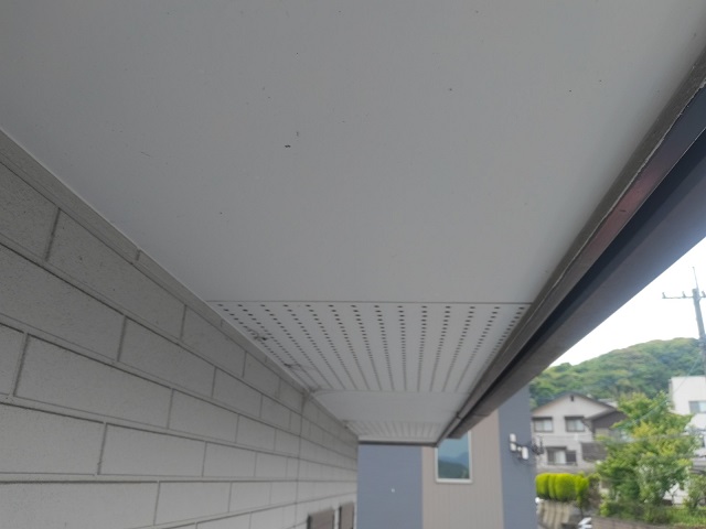軒天:塗装時のままきれいに保たれていました!基礎を塗装することによってコンクリートの中性化を防ぐ事ができます!