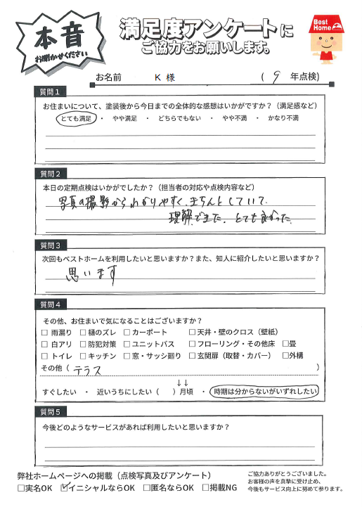 本日は糟屋郡宇美町明神坂にて9年点検に伺い、美観は維持できているか、劣化箇所や補修が必要な箇所はないか確認しました!