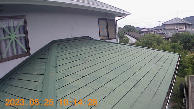 塗装から9年経過しましたので雨筋汚れが目立ってきました。棟板金は問題ございませんでした!