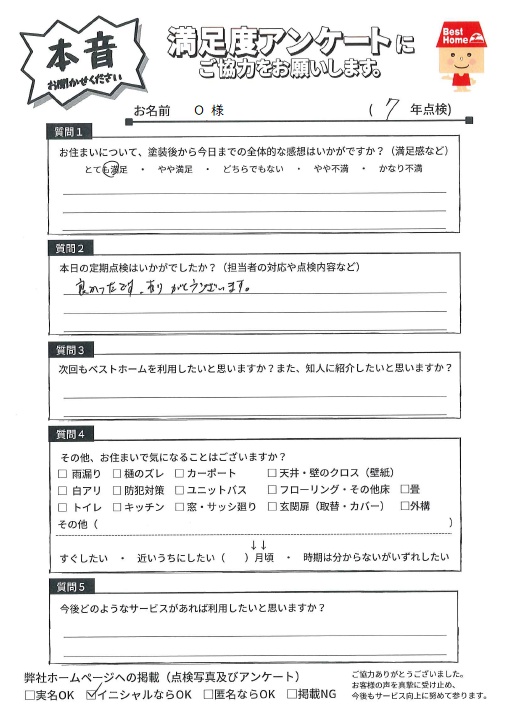 本日は宗像市桜にて7年点検に伺い、美観は維持できているか、劣化箇所や補修が必要な箇所はないか確認しました!