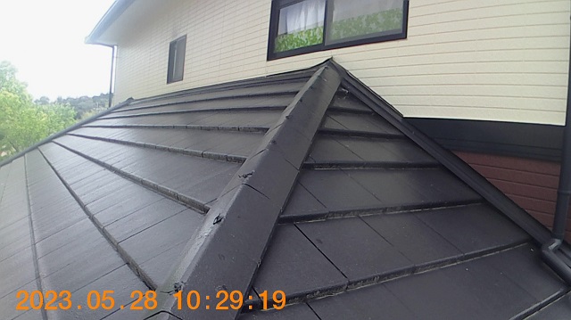 屋根は雨や紫外線からお住まいを守ってくれるので一番劣化が早い部位ですが、7年経過しても剥がれ、色褪せもなく塗装したての状態を維持していました!瓦のズレや留め具にも異常は見当たらなかったのでご安心ください!