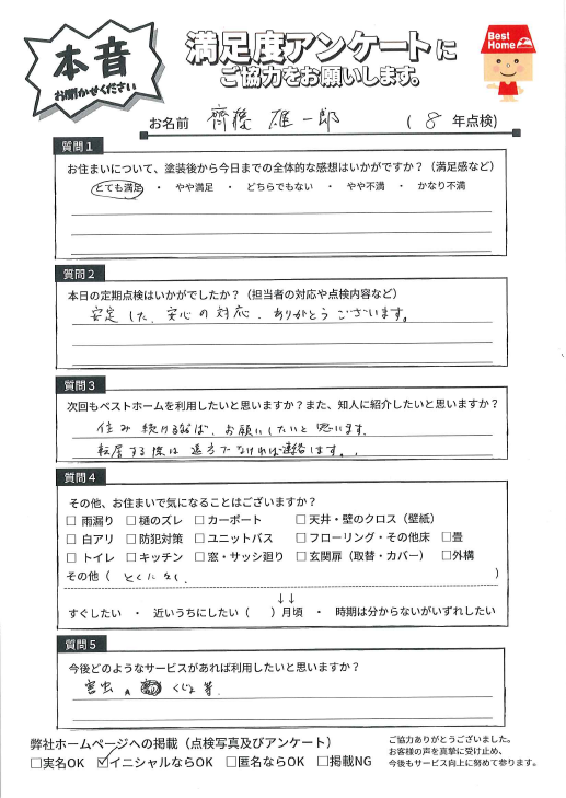 本日はみやま市高田町濃施にて8年点検に伺い、美観は維持できているか、劣化箇所や補修が必要な箇所はないか確認しました!