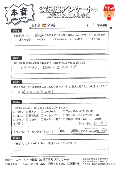 本日は北九州市にて1年点検に伺い、美観は維持できているか、劣化箇所や補修が必要な箇所はないか確認しました!点検結果、お客様からの声をぜひご参考ください。