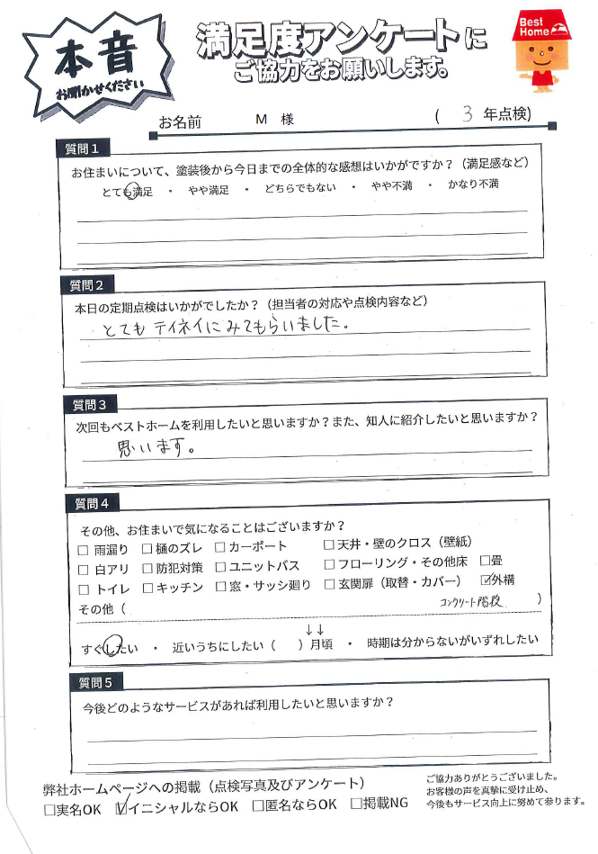 本日は北九州市小倉南区徳吉東にて4年点検に伺い、美観は維持できているか、劣化箇所や補修が必要な箇所はないか確認しました!点検結果、お客様からの声をぜひご参考ください。
