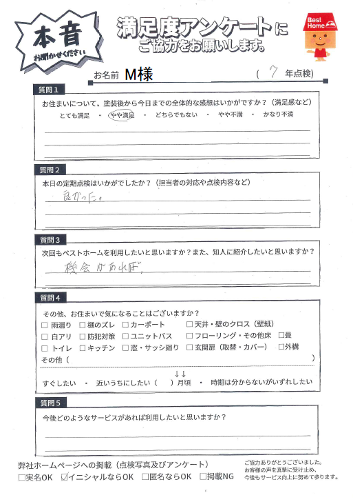本日は行橋市元永にて7年点検に伺い、美観は維持できているか、劣化箇所や補修が必要な箇所はないか確認しました!点検結果、お客様からの声をぜひご参考ください。