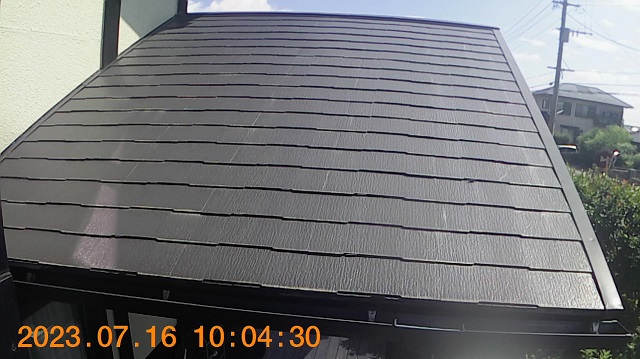 白い筋はコロニアルの塗装後にどのお住まいでも見られますので、ご安心して頂いて大丈夫です。屋根の材質と雨などの酸性の成分が反応しているだけですので良好です。