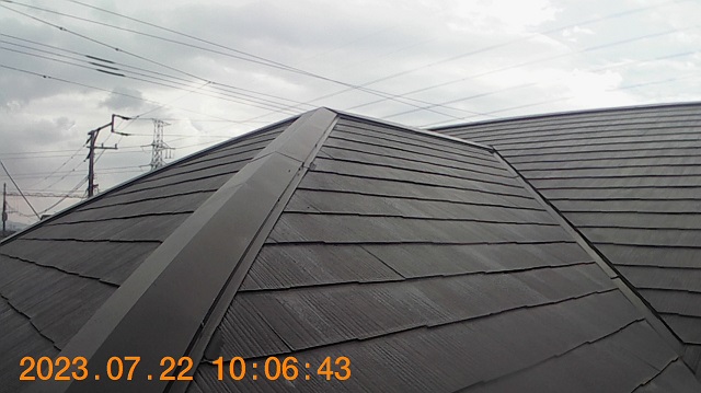 屋根は雨や紫外線からお住まいを守ってくれるので一番劣化が早い部位ですが、6年経過しても剥がれ、色褪せもなく塗装したての状態を維持していました!棟鉄板の浮きや捲れも見当たらなかったのでご安心ください!