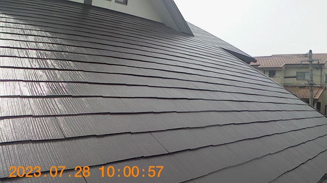 屋根は雨や紫外線からお住まいを守ってくれるので一番劣化が早い部位ですが、1年経過しても剥がれ、色褪せもなく塗装したての状態を維持していました!棟鉄板の浮きや捲れも見当たらなかったのでご安心ください!