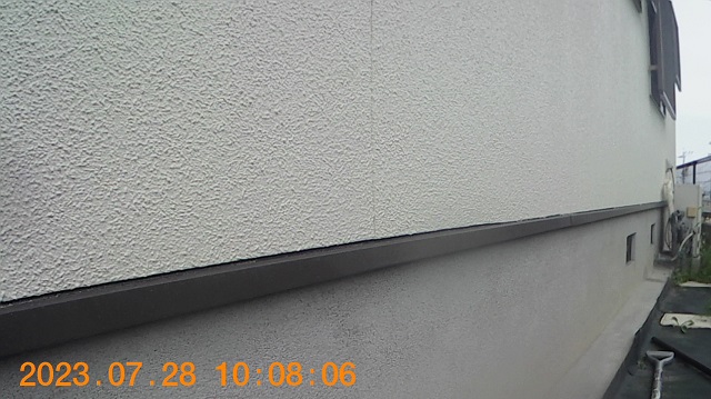 水切り:塗装時のままきれいに保たれていました!水切りを塗装することによって、雨水や土台の腐食、シロアリの発生を防ぐことができます。お住まいの大切な土台を塗装で守っています!