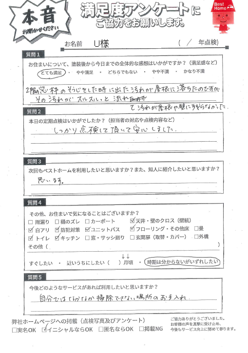 本日は八幡西区星ヶ丘にて1年点検に伺い、美観は維持できているか、劣化箇所や補修が必要な箇所はないか確認しました!点検結果、お客様からの声をぜひご参考ください。