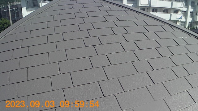 屋根は雨や紫外線からお住まいを守ってくれるので一番劣化が早い部位ですが、2年経過しても剥がれ、色褪せもなく塗装したての状態を維持していました!棟鉄板の浮きや捲れも見当たらなかったのでご安心ください!