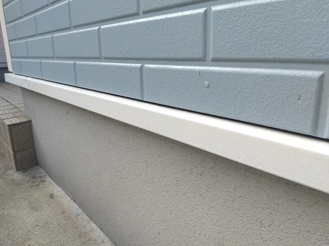 水切り:塗装時のままきれいに保たれていました!水切りを塗装することによって、雨水や土台の腐食、シロアリの発生を防ぐことができます。お住まいの大切な土台を塗装で守っています!