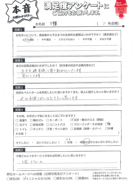 何かご要望がありましたら、いつでもお気軽にご相談ください。来年の点検も伺いますので、今後ともよろしくお願いいたします!