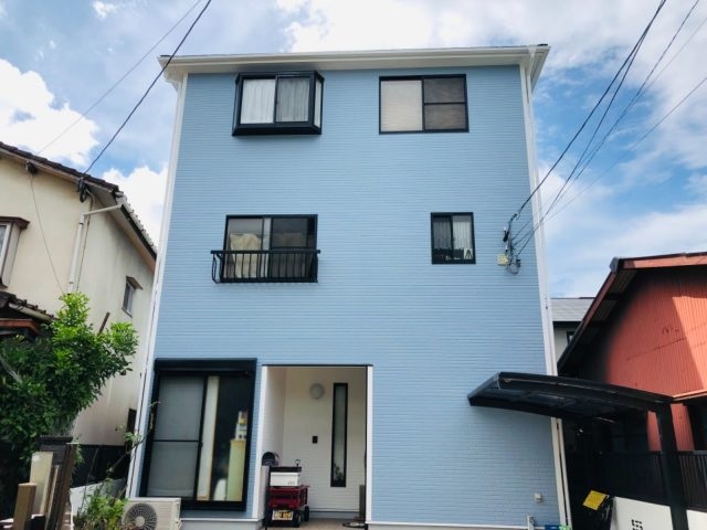 塗装を行い2年が経過しておりますが剥がれ、色褪せもなくキレイに保たれていました!コーキングの劣化もなく防水効果も持続しております!
