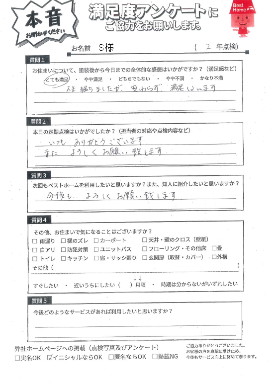 本日は戸畑区幸町にて2年点検に伺い、美観は維持できているか、劣化箇所や補修が必要な箇所はないか確認しました!点検結果、お客様からの声をぜひご参考ください。