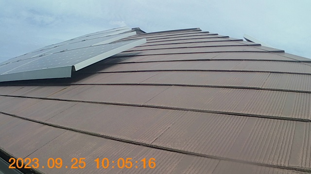 屋根は雨や紫外線からお住まいを守ってくれるので一番劣化が早い部位ですが、5年経過しても剥がれ、色褪せもなく塗装したての状態を維持していました!棟鉄板の浮きや捲れも見当たらなかったのでご安心ください!