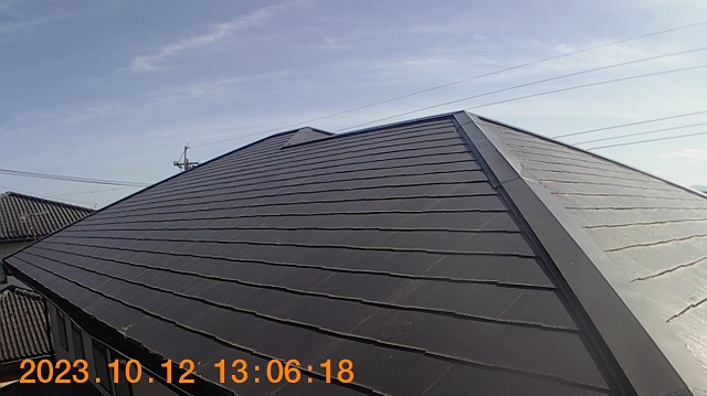 屋根は雨や紫外線からお住まいを守ってくれるので一番劣化が早い部位ですが、5年経過しても剥がれ、色褪せもなく塗装したての状態を維持していました!棟鉄板の浮きや捲れも見当たらなかったのでご安心ください!