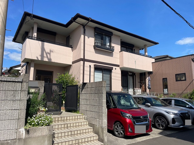 塗装を行い8年が経過しておりますが剥がれ、色褪せもなくキレイに保たれていました!コーキングの劣化もなく防水効果も持続しております!
