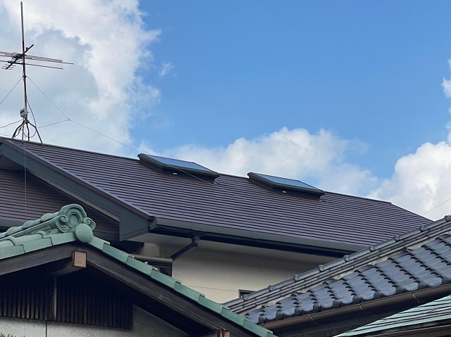 屋根は雨や紫外線からお住まいを守ってくれるので一番劣化が早い部位ですが、5年経過しても剥がれ、色褪せもなく塗装したての状態を維持していました!棟鉄板の浮きや捲れも見当たらなかったのでご安心ください!