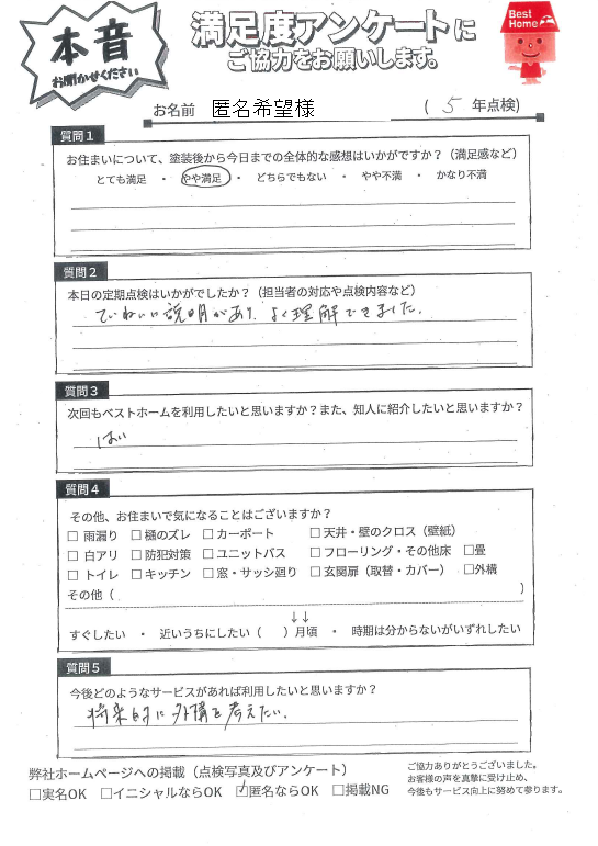 塗装後の満足度アンケート