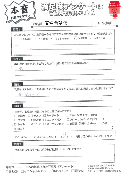 塗装後の満足度アンケート