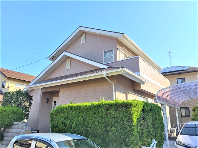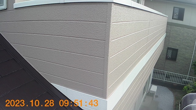 塗装を行い1年が経過しておりますが剥がれ、色褪せもなくキレイに保たれていました!コーキングの劣化もなく防水効果も持続しております!