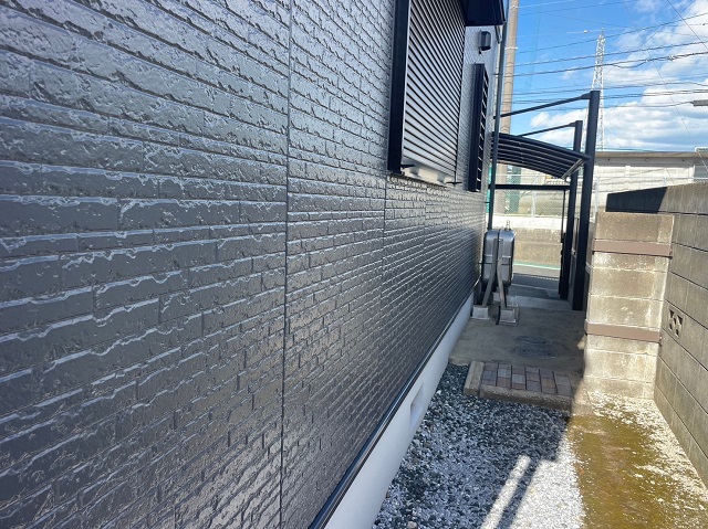 塗装を行い1年が経過しておりますが剥がれ、色褪せもなくキレイに保たれていました!コーキングの劣化もなく防水効果も持続しております!