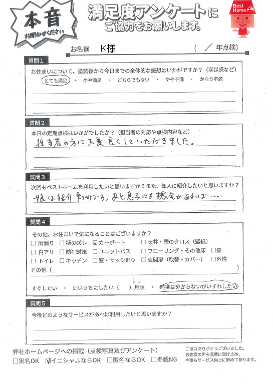 本日は北九州市小倉南区企救丘にて1年点検に伺い、美観は維持できているか、劣化箇所や補修が必要な箇所はないか確認しました!点検結果、お客様からの声をぜひご参考ください。