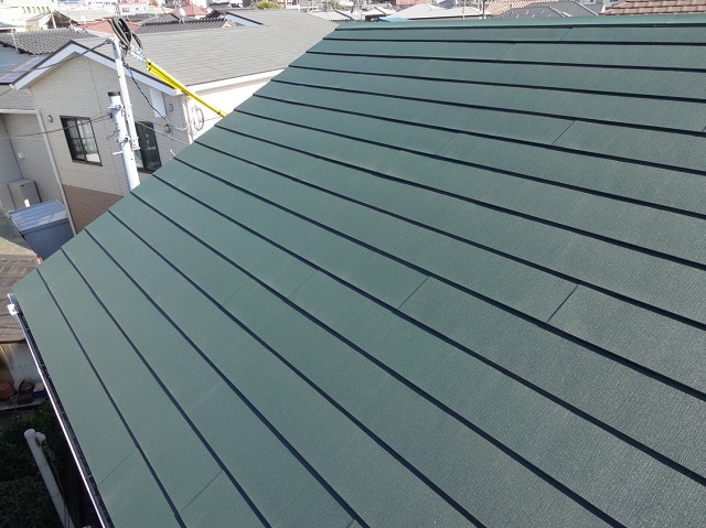 屋根は雨や紫外線からお住まいを守ってくれるので一番劣化が早い部位ですが、1年経過しても剥がれ、色褪せもなく塗装したての状態を維持していました!鉄錆もなく良好です!