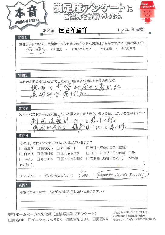 本日は北九州市若松区有毛にて12年点検に伺い、美観は維持できているか、劣化箇所や補修が必要な箇所はないか確認しました!点検結果、お客様からの声をぜひご参考ください。