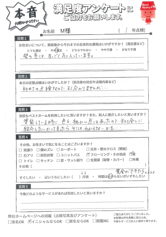 塗装を行い1年が経過しておりますが剥がれ、色褪せもなくキレイに保たれていました!コーキングの劣化もなく防水効果も持続しております!