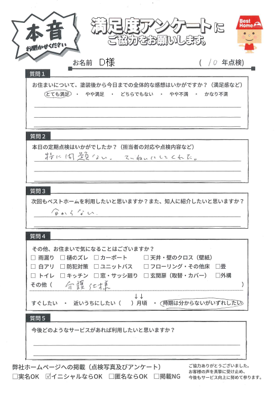 本日は小倉北区熊本にて10年点検に伺い、美観は維持できているか、劣化箇所や補修が必要な箇所はないか確認しました!点検結果、お客様からの声をぜひご参考ください。