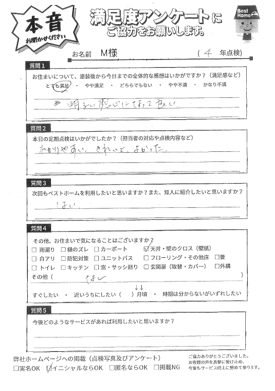 本日は鞍手郡鞍手町弥生にて4年点検に伺い、美観は維持できているか、劣化箇所や補修が必要な箇所はないか確認しました!点検結果、お客様からの声をぜひご参考ください。