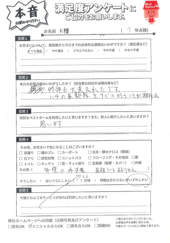 本日は戸畑区沖台にて7年点検に伺い、美観は維持できているか、劣化箇所や補修が必要な箇所はないか確認しました!点検結果、お客様からの声をぜひご参考ください。