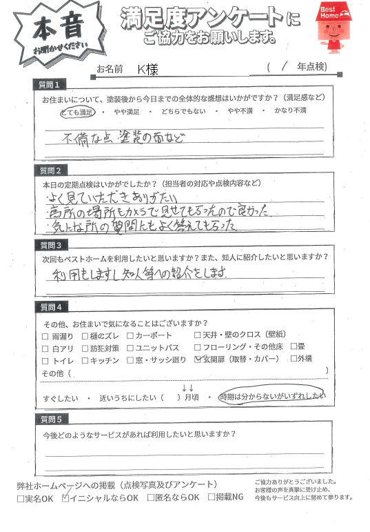 本日は行橋市下稗田にて1年点検に伺い、美観は維持できているか、劣化箇所や補修が必要な箇所はないか確認しました!点検結果、お客様からの声をぜひご参考ください。