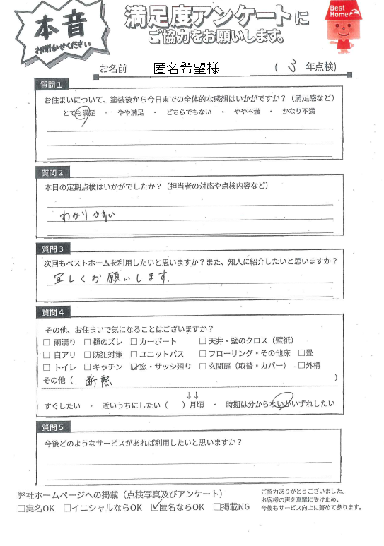 本日は下関市王司本町にて3年点検に伺い、美観は維持できているか、劣化箇所や補修が必要な箇所はないか確認しました!点検結果、お客様からの声をぜひご参考ください。