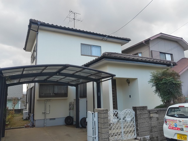 塗装を行い1年が経過しておりますが剥がれ、色褪せもなくキレイに保たれていました!コーキングの劣化もなく防水効果も持続しております!