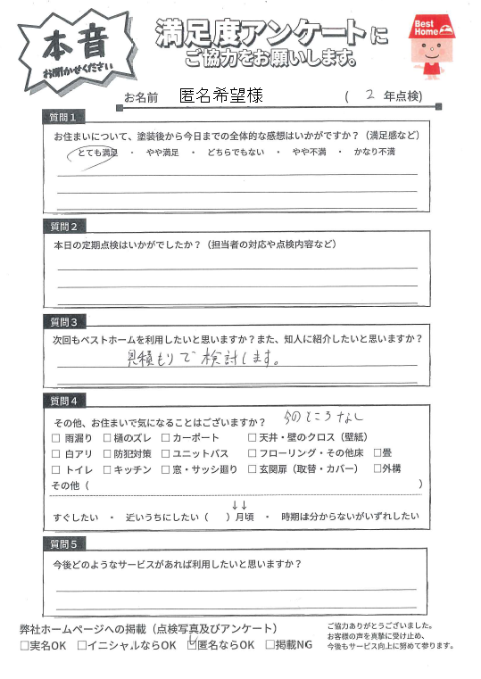 何かご要望がありましたら、いつでもお気軽にご相談ください。来年の点検も伺いますので、今後ともよろしくお願いいたします!