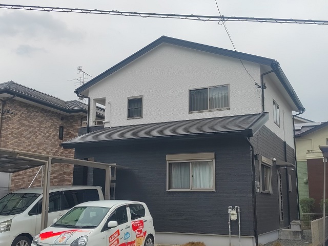 塗装を行い1年が経過しておりますが剥がれ、色褪せもなくキレイに保たれていました!コーキングの劣化もなく防水効果も持続しております!
