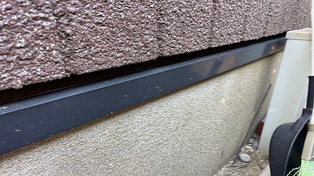 水切り:塗装時のままきれいに保たれていました!水切りを塗装することによって、雨水や土台の腐食、シロアリの発生を防ぐことができます。お住まいの大切な土台を塗装で守っています!