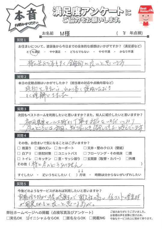 本日は宗像市桜美台にて8年点検に伺い、美観は維持できているか、劣化箇所や補修が必要な箇所はないか確認しました!点検結果、お客様からの声をぜひご参考ください。
